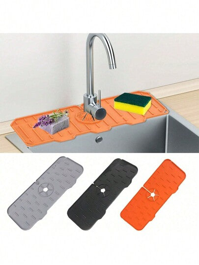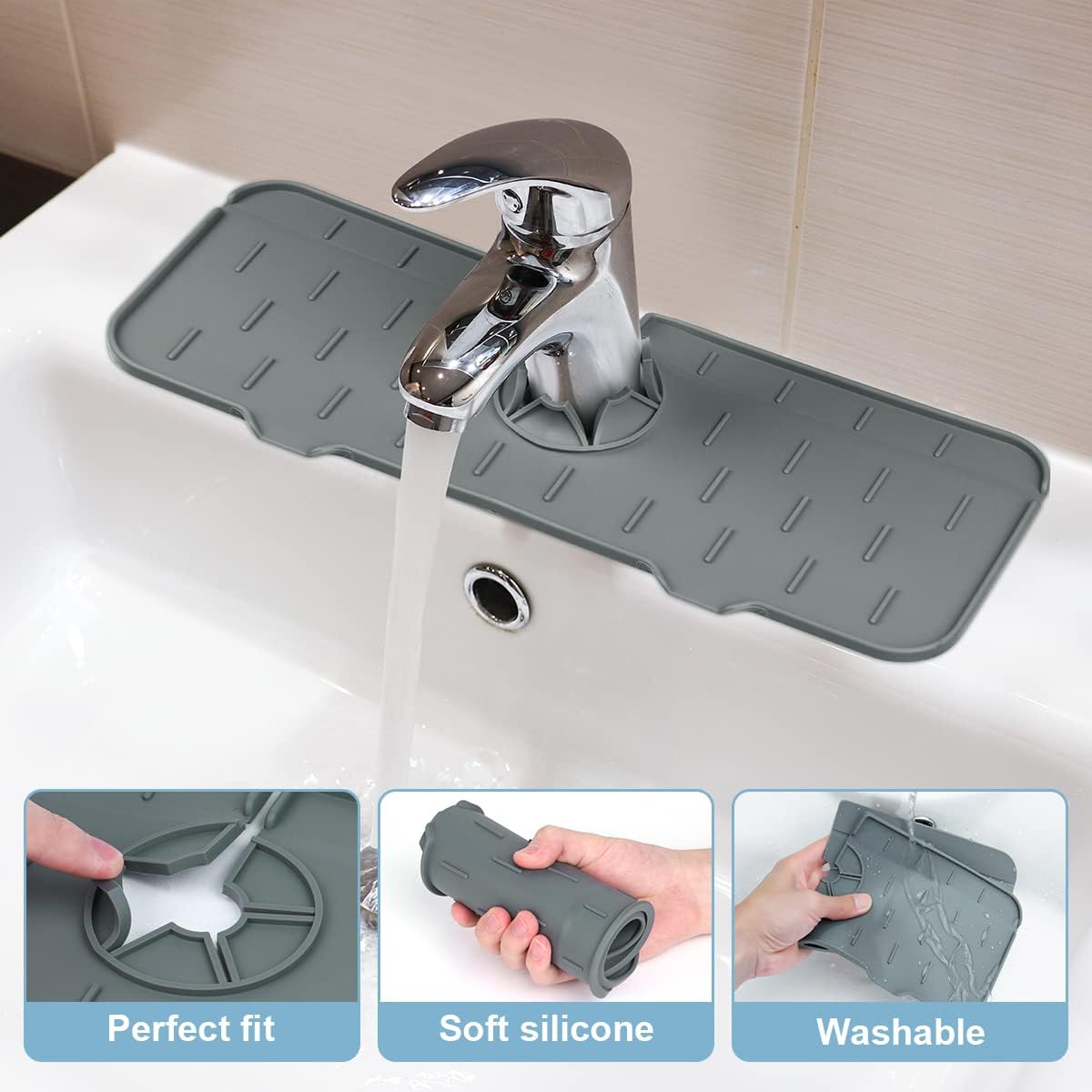 Alfombrilla para grifo, fregadero de cocina, almohadilla contra salpicaduras de silicona, tapa de drenaje, protector de encimera de baño, bandeja de secado rápido.