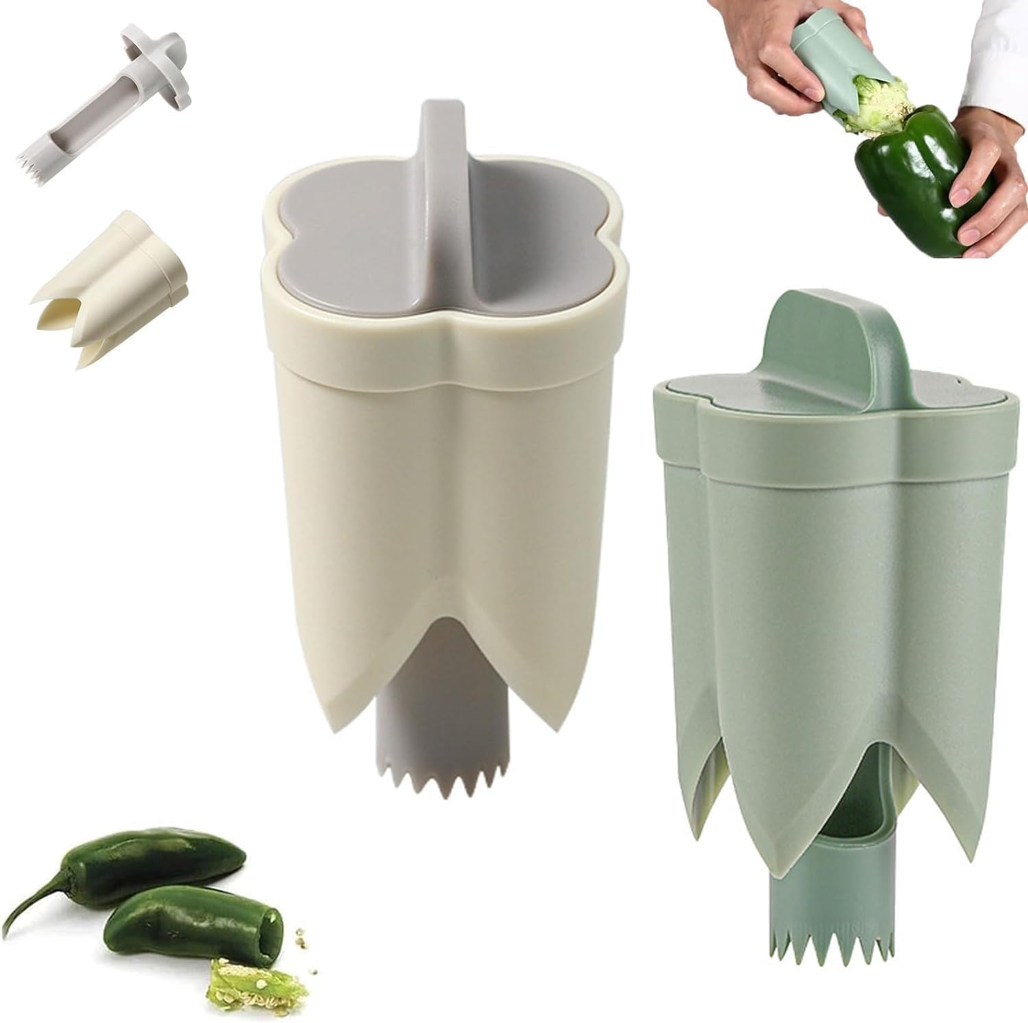 Removedor de semillas de pimienta, 2 en 1, cortador de pimiento morrón, herramienta para quitar semillas de pimiento, herramienta de corte y dessiembra rápidamente para verduras, utensilio