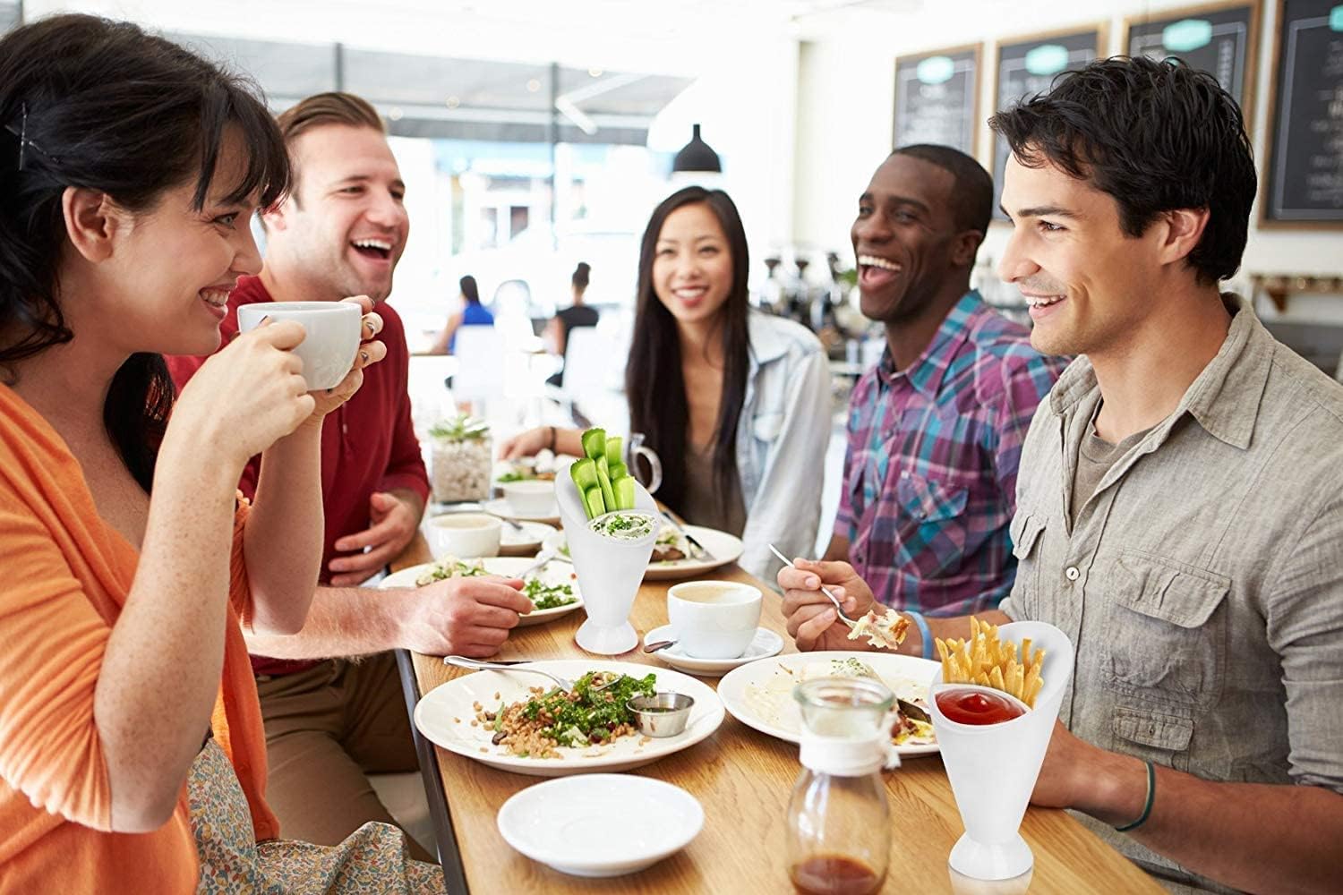 Tazas de plástico 2 en 1 para patatas fritas, plato de postre, salsa, aperitivos, kétchup, taza inclinada, caño de dos tazas, accesorios de cocina